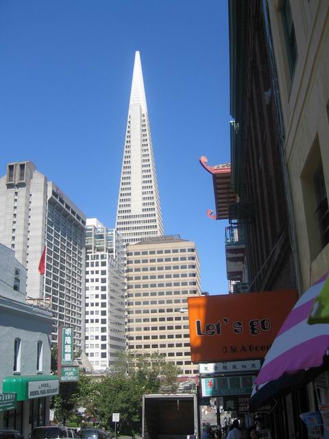 Mardi 1er Aout :Super ! Le "breakfast" est offert par Best Western ! nous échangeons quelques amabilités avec des Québecois, et nous partons à la découverte de San Francisco, le temps est frais, mais beau environ 19°...nous rejoignons Market Street et le départ du Cable Car, point de rendez vous de tous les touristes ! mais à cette heure matinale, pas de "queue", munis de "Pass" pour la journée, nous montons dans ce "tram" prestigieux, archaîque et typique à souhait ! les meilleures places sont sur les marche-pieds, les enfants, petits et grands se précipitent, nous nous contenterons des sièges, réservés aux "seniors", aux USA, les "seniors" et les "handicapés" sont particuliérement respectés ! (qu'on se le dise!)... Nous voici partis pour un parcours pittoresque au possible, direction Fisherman's wharf, l'endroit le plus prestigieux de la ville, lront de mer donnant sur la Baie, avec ses nombreux restaurants et boutiques de souvenirs, musiciens et balladins de toute sorte, (cette année c'est la statue argentée "immobile" qui est à la mode !) Auparavant nous avons fait une halte à la station "Lombard Street" ( lieu des exploits de Steve Mac Queen dans Bullitt ! ) pour prendre des photos de la célèbre rue superbement fleurie, et aux nombreux virages en pente très prononcée, d'où l'on peut contempler la Baie et le célèbre ilot d'Alcatraz et sa prison désaffectée ! Nous flanons sur Fisherman's wharf, jusqu'au Pier 39, jetée aménagée, en zone d'attractions, restaurants, jeux pour enfants, cinémas etc.. et nous poursuivons notre visite en empruntons le "Tram F", tram classique, le "Pass" est vraiment pratique, destination Market street et Chinatown, visite au passage de la Cathédrale de San Francisco, (St. Mary of the Assumption ) très sobre, le quartier chinois est typique à souhait, on s'y croirait, enseignes,, batiments et décorations chinoises. Les commerces aussi bien entendu, les passants par contre sont surtout des touristes ! dire qu'on peut faire des affaires serait exagéré, enfin on peut trouver, des souvenirs fabriqués en Chine (pas besoin d'aller hors de France pour çà!!) et par exemple 4 teeshirts pour 10$, la qualité est correcte sans plus ! La fatigue commençant de se faire sentir, les enfants continuent la visite de Chinatown, et nous rentrons en utilisant le Cable Car, et un peu de marche à pied dans Market street, rue animée, mais à la limite de la sécurité, beaucoup de clochards, de gens déhérités occupés à divers trafics ou trainant leur desoeuvrement dans des bars un peu glauques, une note sympathique, les joueurs d'échecs en plein air! Pour rejoindre notre "Ninth street", c'est quand même un peu long, nous aurions du prendre le métro ou le bus qui empruntaient le même parcours !!
