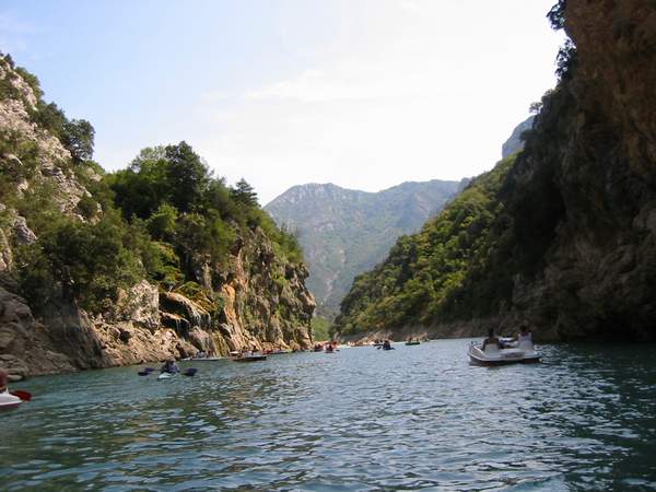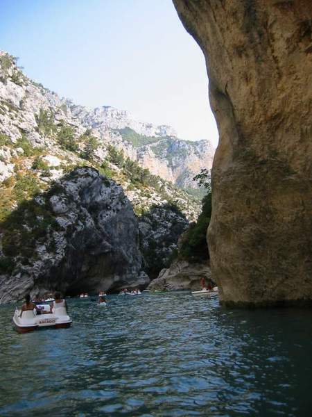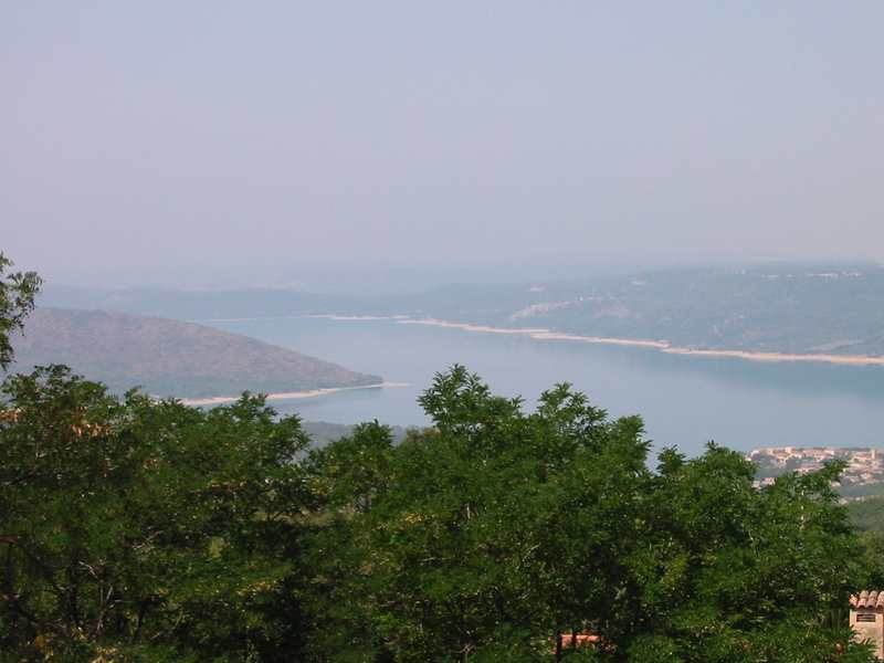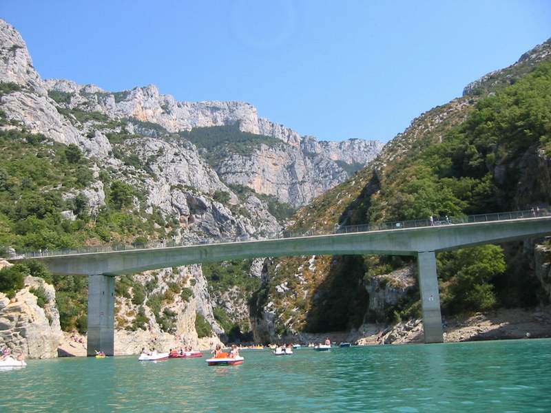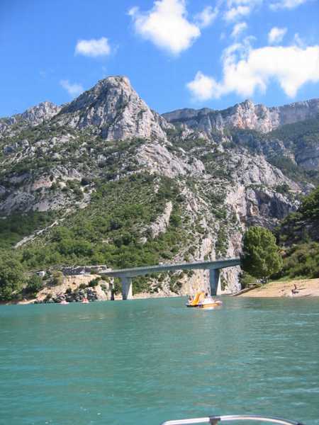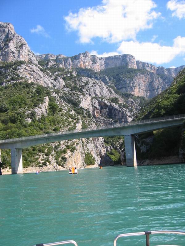 Le lac de Sainte-Croix Le "Lac de Sainte Croix", magnifique plan d'eau " bleu turquoise" de 2200 Hectares, est un lac artificiel créé en 1975, par la construction du barrage sur le Verdon, le Verdon pénètre dans le lac au Pont de Galetas, là se trouve un superbe canyon, que l'on peut visiter en canoe ou pédalo,( agréable expérience, par une belle journée d'été !) Nous nous y rendons en famille, au moins une fois par an, et après une petite baignade et un bon pique-nique sur les bords ombragés du lac, nous remontons le canyon du Verdon en pédalo, pas très sportif sans doute, mais l'expèrience se révèle inoubliable et spectaculaire, gràce au superbe décor. D'agréables variantes de ballades peuvent se faire à Salles sur Verdon et à Bauduen, charmants villages sur les bords de ce lac enchanteur ...