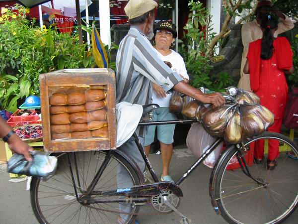 petites échoppes ou chez les marchands ambulants (en bicyclette !).