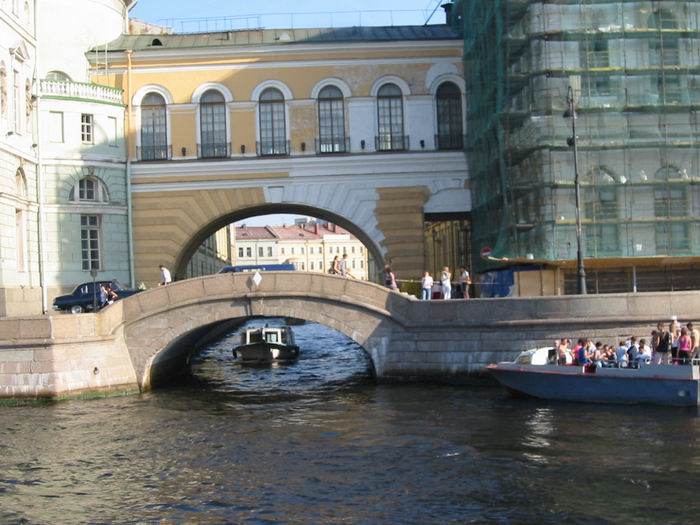 ! - 7 Aoùt - Lever à 6h30, réveillés en fanfare, par un retentissant "buongiorno" de Serguei (SERGE) au haut-parleur, petit dejeuner à 7H30, départ en bus à 9H pour la première excursion, ( ce sera aussi un rituel quotidien) Tour de la ville, première impression de St-Petersbourg : nous sommes de suite séduits par l’architecture aux couleurs pastels bleues ou jaunes et les nombreux canaux…il fait beau et chaud (30°) Premier arrêt (Nevsky Prospect) avenue Nevsky, le cœur de la ville, pour effectuer notre premier change : (un Euro vaut 35 Roubles) et visiter la superbe église de Notre Dame de Kazan, où un office se déroule avec une centaine de fidèles debouts…rite orthodoxe bien entendu… l’avenue Nevsky est très animée, nous sommes samedi, premières surprises, foule de promeneurs identique à nos « foules de promeneurs », mêmes vêtements, le portable à l’oreille ! pas de signes de pauvreté apparente (que ne dit on pas chez nous à ce sujet !) nombreux vendeurs des rues, sans agressivité, rares mendiants, en général devant les églises (mais pas plus que chez nous!). Circulation dense, nombreuses voitures neuves, avec une proportion de 50% de Lada, plus ou moins défraichies… Nous continuons notre visite par l’ile aux Lièvres, entourée par l’impressionnante Néva, visite de la forteresse Pierre et Paul (construite en 1703 par Pierre le Grand), et de la cathédrale St Pierre et St Paul (avec sa superbe flèche dorée) où sont inhumés la plupart des membres de la famille Romanov (tsars).. De l’ile superbe point de vue sur la Néva et les Palais la bordant. Ensuite ile Vassilievsky et ses quais bordés de Palais. Déjeuner en ville dans un grand hotel, terrasse en plein air surplombée par un authentique vaisseau spatial ! Nous attaquons ensuite le plat de résistance, visite du musée de l’Ermitage, absolument fabuleux, tant par la beauté du Palais d’Hiver qui l’abrite, que par la richesse du mobilier et des œuvres exposées (3millions dans le musée, 60.000 exposées dans 400salles) c’est un peu fatiguant, mais à lui seul, ce musée, parmi les plus grands du monde, mérite le voyage…(Jeanine remercie toutes les responsables de salle qui lui ont offert chaleureusement leur siège pour se reposer) A la sortie nous effectuons la traditionnelle ballade en bateau-mouche sur la Néva, extraordinaire diaporama, de quais, palais, canaux, ponts (inoubliable) nous découvrons le croiseur « Aurore » grand personnage de la révolution d’octobre, un peu endormi à son poste d’amarrage. A 20heures nous reprenons le bus pour rejoindre un grand hotel ou est présenté un magnifique spectacle folklorique, par une troupe cosaque, les prouesses des danseuses et danseurs, chanteuses et chanteurs russes sont bien connues, mais on ne se lasse pas de les voir et les entendre. Retour et diner à 23H, « rude journée » !! nous n’avons pas eu besoin de berceuse !! |
