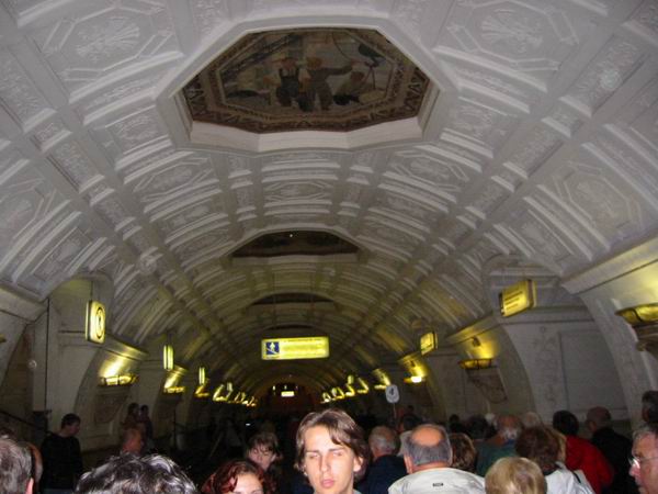avons visité la station de métro desservant ce monument, la station la plus profonde du Métro de Moscou (150m) un ticket de métro coute 5roubles l'équivalent de 0.90 Euros …