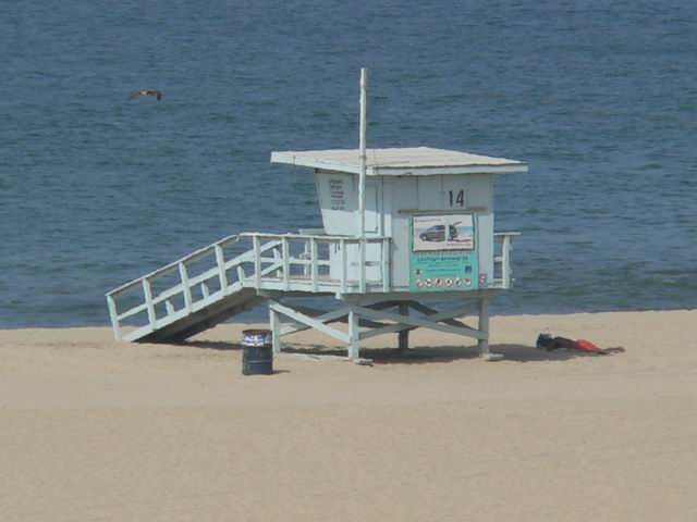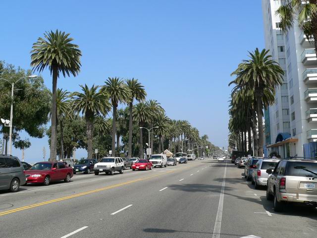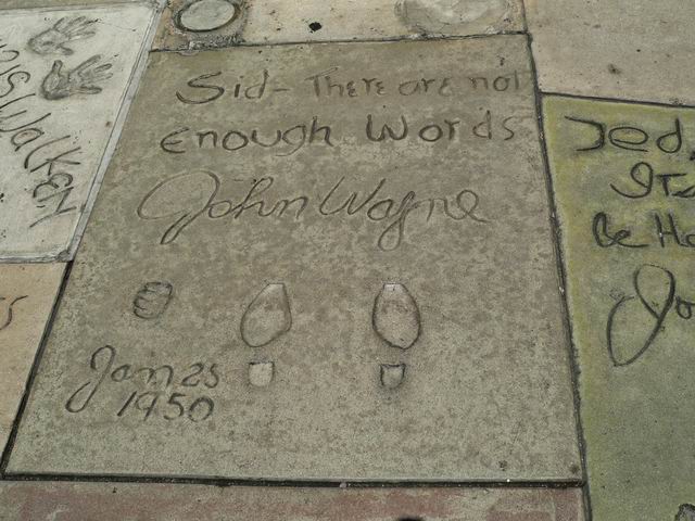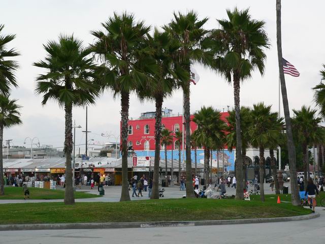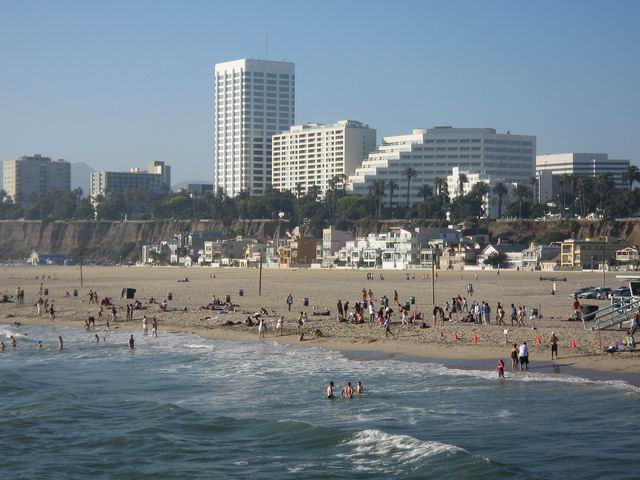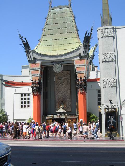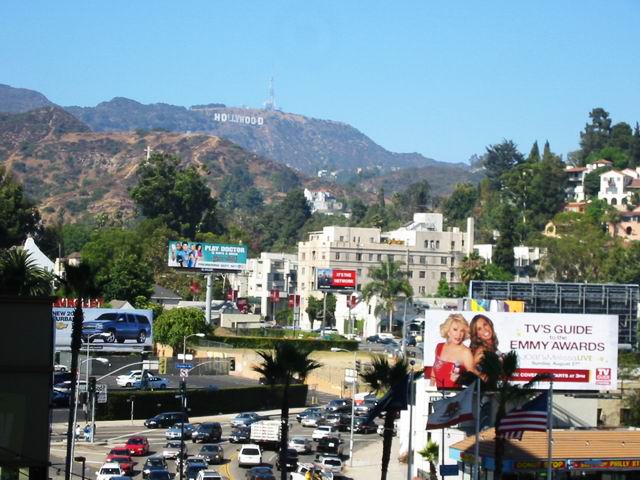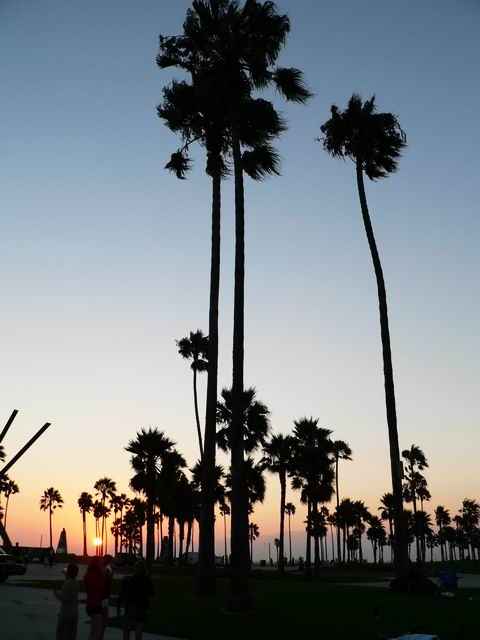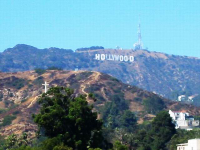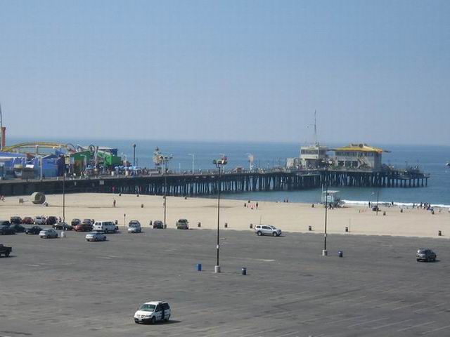 Vendredi 18 Aoùt : le temps est un peu couvert à notre réveil, mais il semble que c'est plutôt la pollution de cette immense agglomération, (qu'est Los Angeles) qui voile le soleil !! la température avoisine 25°.. nous partons en voiture vers Santa Monica, très belle ville en bordure du Pacifique, magnifiques avenues plantées de palmiers, demeures cossues, vaste plage, un bel aspect de la Californie ! renseignements pris au "visitor center" nous empruntons le Wilshire Boulevard qui nous améne directement à Beverly Hills, et à Hollywood, lieux mythiques de tout ce qui touche au cinéma ! nous visitons Sunset Boulevard et Hollywood Boulevard, et nous nous arrêtons longuement au "Chinese Théatre", où toute star qui se respecte a mis l'empreinte de son pied ou de sa main, dans les dalles en ciment, tous sont là ou presque ! il y a même un français "Maurice Chevalier" !! aucun de nos acteurs français célèbres n'a eu le renom du fameux chanteur au canotier aux USA ! malgré nos recherches, personne d'autre ? le grand attrait du coin sont les centaines d'étoiles, imprimées au nom des stars, dans les dalles du trottoir, sur plusieurs centaines de mètres ! les environs du Théatre Chinois, sont grouillants de badauds, de touristes, de saltimbanques en tout genre, de prostituées, et de ...pickpockets ! beaucoup de rabatteurs aussi, pour des tours en bus, parmi les villas des stars, un français même, qui s'est montré très affecté que nous refusions ses services, mais à onze personnes, il faut réfléchir, avant de se lancer dans un quelconque investissement !! nous avons donc visité les villas de Béverly Hills avec nos voitures, rien de bien extraordinaire d'ailleurs, la plupart étant entourées de hauts murs, afin de se proteger des curieux. Le quartier respire toutefois, fortement l'opulence !! nous avons suivi le Sunset Boulevard qui nous amène à l'Océan Pacifique, vers la plage de Malibu, nous avons préféré retourner à celle de Santa Monica, qui convenait mieux aux enfants. Ceux ci ont terminé la journée dans l'eau, au milieu des vagues du Pacifique, nous avons préféré récupérer de la journée d'hier en flanant au bord de l'eau et sur le très beau Pier de Santa Monica, une longue avancée en pilotis sur l'Océan. Retour par Pico Boulevard, en faisant un petit crochet par Venice, une autre très belle plage, qui nous a semblé un peu mal fréquentée, nous reviendrons demain, car le soir tombe, propice à tous les trafics !!