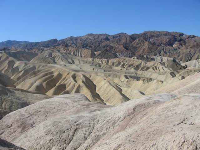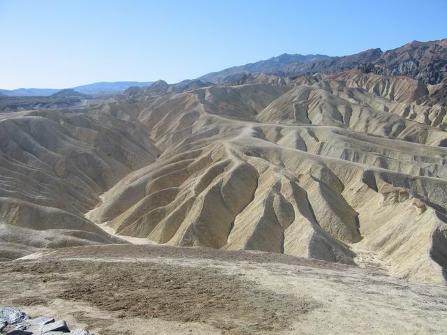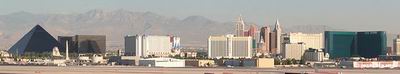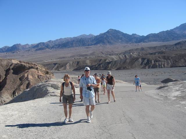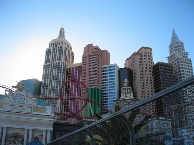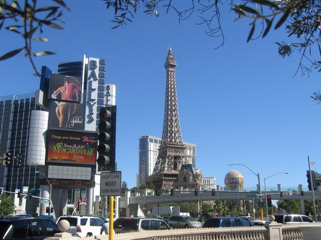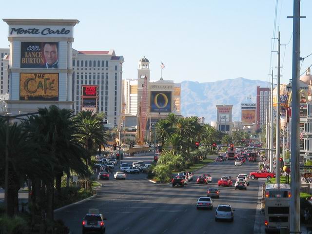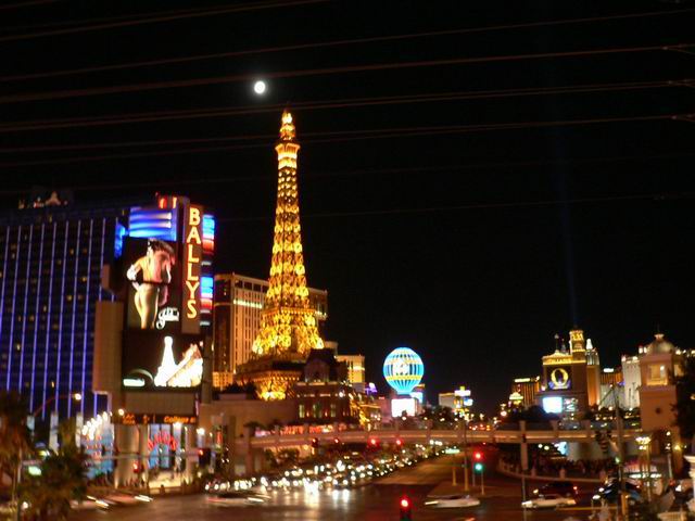 Dimanche 6 Aoùt : La nuit fut bonne gràce à la "clim", au matin nous nous dirigeons vers Las Végas, mais il nous reste une bonne partie de la "Vallée de la Mort" à traverser. Premier arrêt à Zabriskie Point, arrêt incontournable, étant donnée la beauté du site, au lever du soleil, les rocher deviennent dorées, extraordinaire ! cap à l'Est, nous entrons dans le Nevada au niveau de la ville de Pahrump, en dehors de cette agglomération, nous roulons dans le désert ! il fait 42°, du gateau à côté de Furnace Creek ! nous rejoignons la Freeway 15N qui nous améne directement sur le STRIP (Las Végas Boulevard) artère centrale de la ville ! défilent devant nous, les grands hotels, Mandalay Bay, Louxor, Excalibur, MGM, NewYork-NewYork, le Paris, le Bellagio; Caesars Palace, le Mirage, le Vénitian, Treasure Island etc etc ..fabuleux ! Il fait aussi 42° à Las Végas, nous roulons sur le Strip, jusqu'au vieux Las Végas, au niveau de Fremont street, nous ne pouvons résister au plaisir de refaire le Strip dans l'autre sens, pour nous rendre à notre hôtel, un peu excentrè par rapport au centre vital ! mais nous avons à notre disposition un monorail, ou la voiture, qui s'avère à l'usage plus pratique et plus économique, tous les hotels ayant un parking "self parking" où l'on peut trouver une place gratuite facilement. Notre hôtel se révèle excellent , un Best Western toujours ! le "Mardi Gras", très belles chambres.. nos petits enfants apprècient particuliérement la piscine ! Connaissant déjà cette ville, nous préférons nous reposer en fin de soirée, nos enfants et amis repartent dans le centre grâce au monorail ! Un torrent de lumière se déverse sur Las Végas, laissant la place à toutes les excentricités, chaque hôtel, chaque casino, rivalise pour se montrer sous son jour le plus extravagant ! Et les attractions succèdent aux attractions, nos enfants et petits enfants sont éblouis par cette débauche de "pub", les visiteurs sont très nombreux cet été, et chacun peut trouver la distraction de son choix, chaque hôtel propose plusieurs attractions "gratuites", et chaque hôtel dispose d'un Casino généralement conçus pour être traversé obligatoirement par les visiteurs et la clientèle ! ambiance musicale, sur fond de machines à sous, et selon les "mauvaises langues", l'air serait chargé d'oxygène, pour doper les joueurs ? ahurissant de voir ces milliers de personnes absorbées par leur recherche du gain ! On peut tout voir, des familles avec le bébé dans le landau ! des vieilles dames dans leur fauteuil roulant ! l'enfer du jeu çà existe ... ce lieu de perdition est sans doute une drogue pour ceux qui ne savent pas s'arrêter, on peut être tenté, (tout est fait pour..) mais rien ne vous y oblige ... dans notre groupe, personne n'a succombé!!