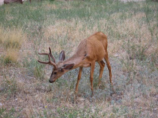 Quelques kilomètres en bus nous raménent vers le centre du Canyon et les plus courageux attaquent un très beau sentier ( le East Rim Trail ) qui s'élève aux flanc de la falaise, hélas, là aussi, le temps manque, ce parc mériterait plusieurs jours pour bien le connaitre, nous n'avons pu obtenir de place au Lodge, (où nous avions séjourné lors de notre dernier voyage) bien situé au centre du Canyon, nous devons poursuivre notre route vers Mount Carmel Jonction, magnifique parcours sur une route de montagne, splendides paysages qui passent progressivement des pentes excarpées à des zones de paturages où paissent des bisons d'élevage, et où circulent des cavaliers dans le plus pur style western... nous arrivons à notre étape du jour, Mount Carmel Jonction, une modeste agglomération, bien située à la jonction de la route 9 et de la 89 qui vient de Kanab. Notre hotel (toujours un Best Western !)est situé près d'un golf, et d'une forêt, dans un cadre magnifique, idéal pour le repos, il y a même une piscine où les enfants se précipitent, c'est parfait !