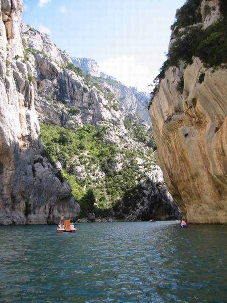 Le lac de Sainte-Croix Le "Lac de Sainte Croix", magnifique plan d'eau " bleu turquoise" de 2200 Hectares, est un lac artificiel créé en 1975, par la construction du barrage sur le Verdon, le Verdon pénètre dans le lac au Pont de Galetas, là se trouve un superbe canyon, que l'on peut visiter en canoe ou pédalo,( agréable expérience, par une belle journée d'été !) Nous nous y rendons en famille, au moins une fois par an, et après une petite baignade et un bon pique-nique sur les bords ombragés du lac, nous remontons le canyon du Verdon en pédalo, pas très sportif sans doute, mais l'expèrience se révèle inoubliable et spectaculaire, gràce au superbe décor. D'agréables variantes de ballades peuvent se faire à Salles sur Verdon et à Bauduen, charmants villages sur les bords de ce lac enchanteur ...